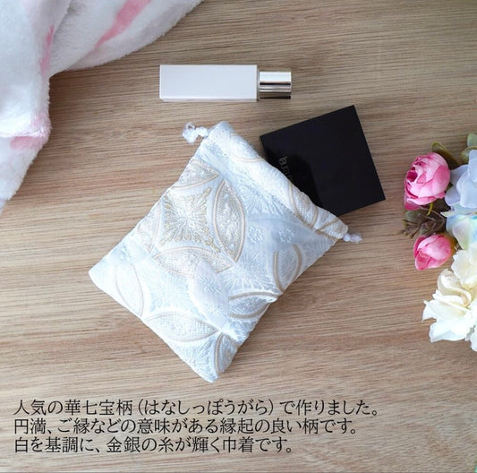 モノトーンな水玉模様が可愛い、 西陣織なのに洋風の装いにもピッタリなアイテムたちです。 銀糸の素敵な輝きをお楽しみください。