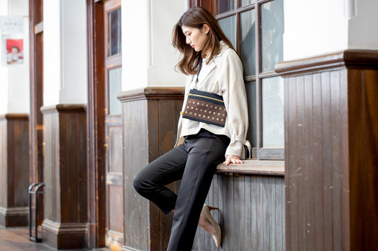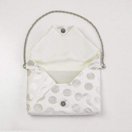 モノトーンな水玉模様が可愛い、 西陣織なのに洋風の装いにもピッタリなアイテムたちです。 銀糸の素敵な輝きをお楽しみください。